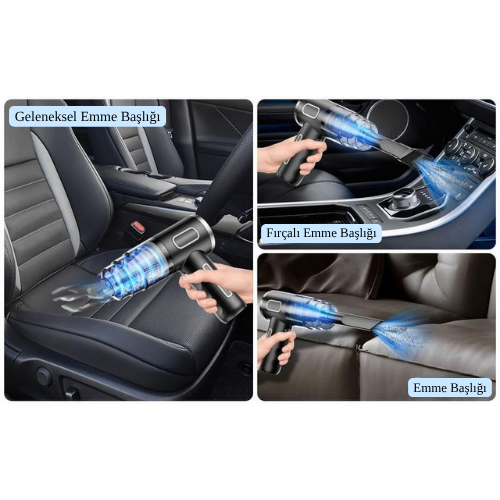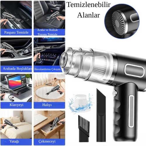 2'si 1 Arada | Yüksek Güçlü Type-C Şarjlı Kablosuz Araç ve Ev El Süpürgesi