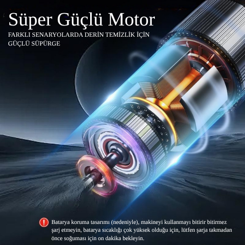 Kompakt ve güçlü tasarımıyla her köşede etkili temizlik sunar. Aracınızdan evinizin en dar alanlarına kadar, her yere ulaşan bu kablosuz süpürge ile temizlik artık çok kolay!